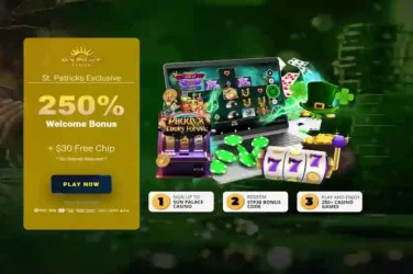 Read moreSun Palace Casino St Patrick's Day Bonus Seize the opportunity and revel in the Sun Palace Casino St. Patrick's Day Special, offering up to a 250% welcome bonus up to...