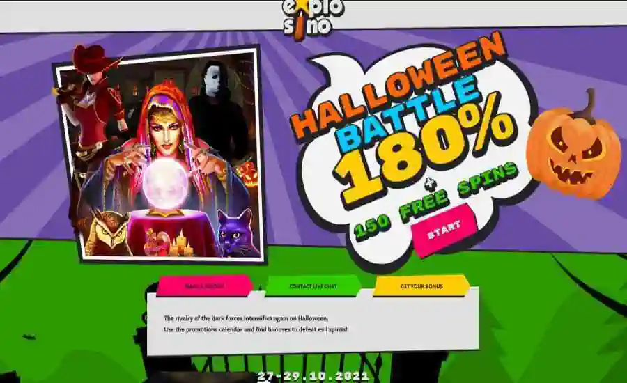 We have some great news for you Were near the end of October and these online casinos listed below will light up with Halloween bonus codes, smiling lantern pumpkins, ready-to-pour out holiday bonuses, and free spins to the players. Already on October 27, Explosino will start distributing treats to its users, and a day later their other online casinos ZigZag777, and, IVICasino will also join the Halloween fun.