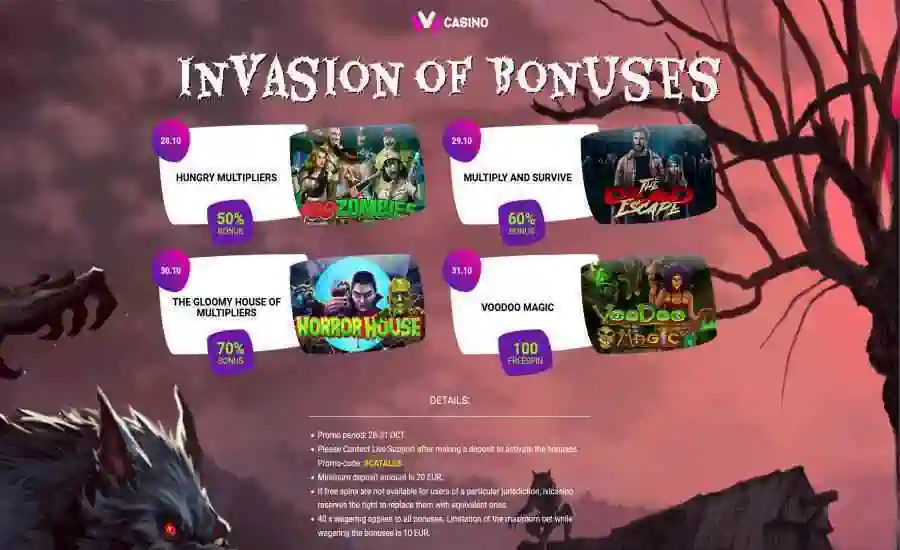Enter your Halloween bonus codes when you check out at the cashier ( If available ), to obtain the desired bonus code for the specific game or bonus